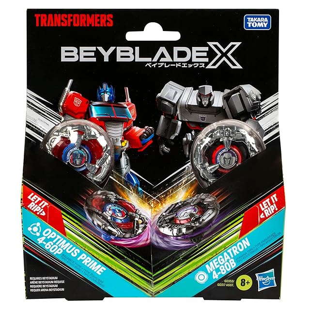商品名:ベイブレード X トランスフォーマー コラボ オプティマス 4-60P vs メガトロン 4-80B マルチパックセット トップス2個&ランチャー2個付き 8歳の男の子と女の子用のバトルトップトイ (限定)