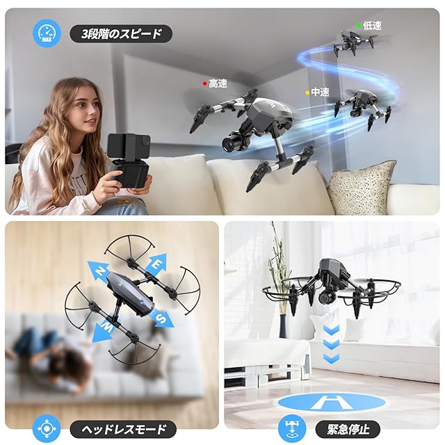 【初学者向け】ヘッドレスモード、緊急停止、ワンキー離陸/着陸など、初心者向けの機能が豊富に備わっており、子供でも手軽にドローンの飛行を楽しむことができます。