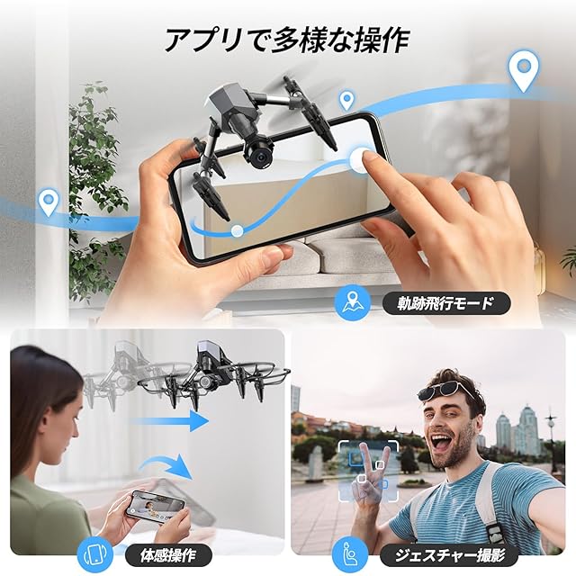 【専用アプリ機能】ジェスチャー撮影、軌跡飛行モード、体感操作モードなど、様々な専用アプリの機能が搭載されており、機体カメラから得られる楽しみと体験をさらに高めることができます。