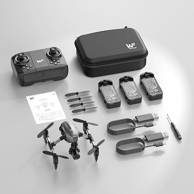 商品名:ドローン カメラ付き 100g未満 WeFone 申請不要 子供向け 1080P FPVカメラ 小型 プロペラガード バッテリー3個 21分操作時間 収納ケース付き 室内 ジェスチャー撮影 オプティカルフロー 軌跡飛行 2.4GHz 初心者向け 小学生 プレゼント 国内認証済み WF10 黒