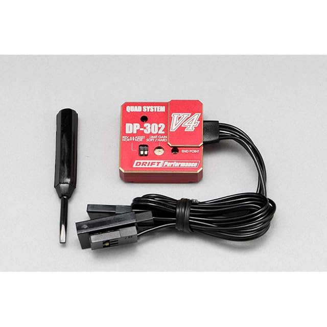 <B>4モードから選択可能な新開発クワッド システムを搭載し、ドリフト初心者からハイレベルな競技出場者の方々まで、幅広いユーザー層に対応した、超高性能 新世代 ドリフト専用ステアリング ジャイロです。<br> <br> DP-302V4ジャイロ 解説動画<br> youtu.be/qXSzAnsnXCk<br> <br> 高性能チップの新採用でハンチングを抑制。 <br> アルミ筐体は薄型デザインを採用し、ベベルエッジには高級感漂うゴールドアルマイトを施しています。<br> <br> 画期的な新機能となるクワッドシステムは”デュアルゲインモード”と”デュアルゲインコントロール”の2つに大きく分かれます。<br> <br> デュアルゲインモードではASSIST(アシスト)とNOR(ノーマル)をディップ スイッチで切り替えることが可能。 <br> ASSIST モードではドライバーの操作に対して、ジャイロの補正が強く働き、初心者でも気軽にRWD ドリフトをお楽しみいただけます。<br> NOR モードではドライバーのステアリング操作を優先して、よりコンペティティブな走行が可能となります。<br> <br> デュアル ゲイン コントロールではSOFT(ソフト)とHARD(ハードをそれぞれ)0~100の範囲でゲイン調整できます。 <br> SOFT モードではジャイロの初期反応を抑え、フロントのグリップを捉えやすくなりますので、タイル / カーペット路面での走行に向いた設定となります。 <br> HARD モードではジャイロの初期反応を高めることで、初心者の方や大型のコースでの走行に向いた設定となります。<br> <br> 新設計の薄型筐体の採用で、各スイッチの視認性と操作性が大幅に向上。 <br> 微妙な設定変更でもしっかりと確認が可能です。<br> ※2チャンネル送受信機でご使用いただく場合は、3チャンネル接続用の信号線を受信機に差し込まないことで2チャンネルモードとなります。<br> <br>