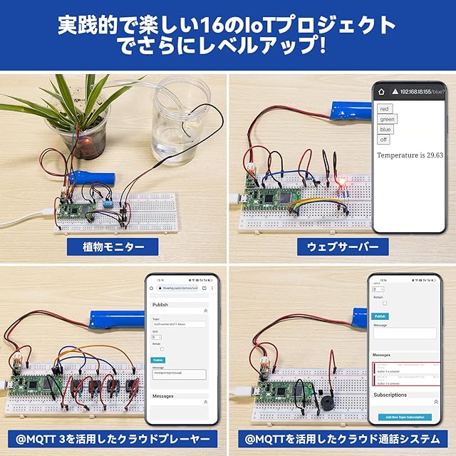 幅広いハードウェア:センサー、アクチュエーター、LED、LCDなど、多様な部品が含まれており、Raspberry Pi Pico 2 Wを使ったさまざまなプロジェクトの実験や作成が可能です