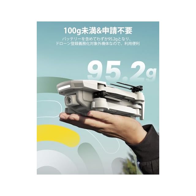 ✈【100g未満&申請不要】バッテリーを含めてわずか95.2gとなり、申請不要のドローン登録義務化対象外機体です。届いたらすぐに利用できるので、子供へのプレゼントに最適です。