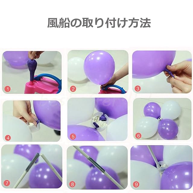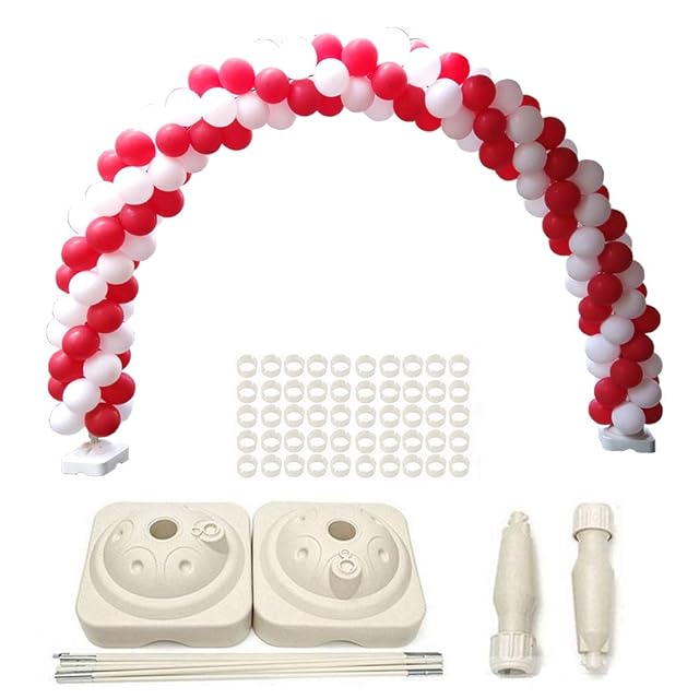 <br>バルーンアーチキット仕様:<br>材質:プラスチック+金属<br>バルーンベース:(L)X(W)35X35cm<br>プラスチックバックル:(L)X(W)3.5X2.4cm <br>コネクタチューブ:(L)X(W)20X6cm <br>ロングチューブ:(L)X(W)73X1cm <br>セット内容:<br> 2Xバルーンベース<br> 2Xコネクターチューブ<br> 10Xロングチューブ<br> 75Xプラスチックバックル