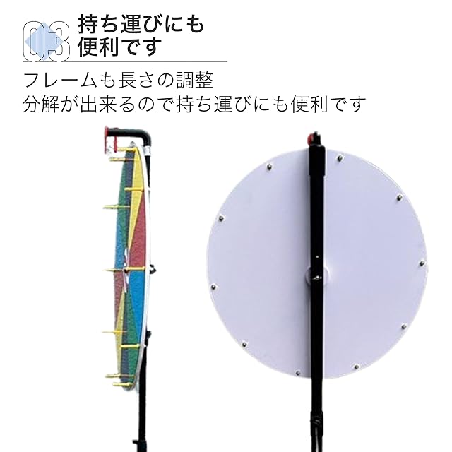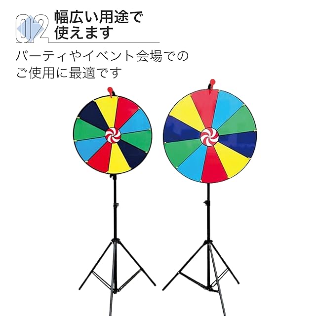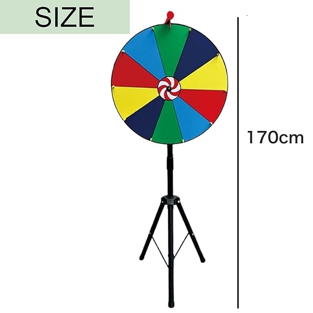 【3脚スタンドタイプのルーレット】3脚タイプのスタンド式ルーレットです。10スロットは視認性に優れて見やすく、使い勝手が良いです。【幅広い用途で使えます】パーティやイベント会場でのご使用に最適です。また安定性が高いので、屋外の会場でのご使用にも活躍します。【持ち運びにも便利です】スタンドは折りたたみ式です。フレームも長さの調整、分解が出来るので持ち運びにも便利です。 【商品内容】 サイズ:高さ170cm カラー:10スロット 【安心の30日&オリジナルパッケージ付】Asdaysブランドより、オリジナルパッケージで迅速にお客様の元へお届けいたします。また本製品は購入から30日間の返品付きとなります。商標登録第6473556号