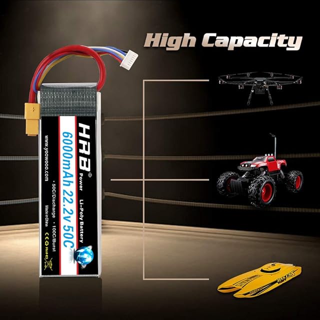 【商品名】HRB 6000mah 22.2V 6S Lipoバッテリーパック50C,素早く充電され、長いサイクル寿命(最低150時間)、最高200Wh / kgエネルギー密度
