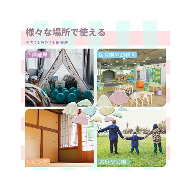 【エコ素材&フリ滑り止めゴム】滑り止めのPP素材を採用して、転んでも怪我しにくい、安全に遊ぶことができる!エコな素材は無臭無汚染、お子様の健康を優しく守ります!床に触れる三点だけではなく、裏面の淵全体に滑り止めゴムを付けていて、面でしっかりと支えて、安定性が抜群!飛び移ったり踏んだりした時に滑りにくく、ストーンがズレてしまう心配がありません。