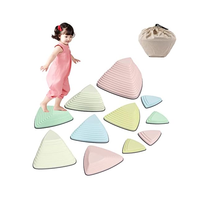 TOJOY バランスストーン 11個セット 子供 飛び石 平均台 バランス トレーニング マカロンカラー ラッピング対応 飛び石 全面滑り止め ジャンプ スポーツ 屋外 室内 アスレチック おもちゃ バランス感覚 柔軟 体幹トレーニング 収納袋付き 誕生日