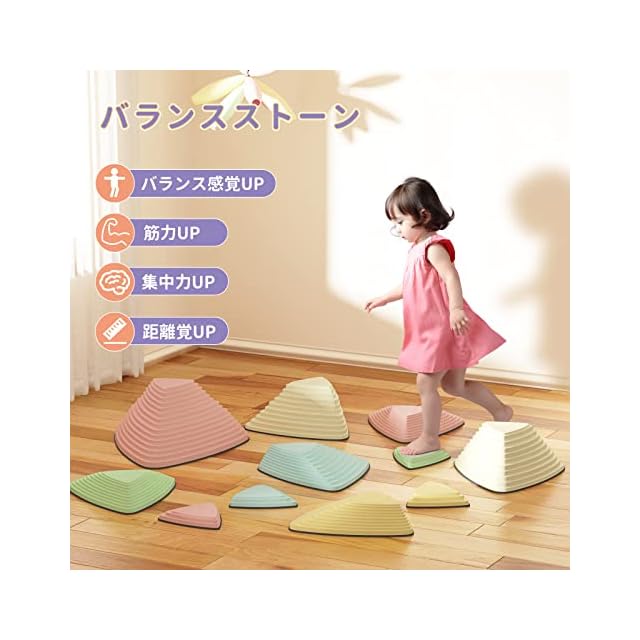 商品名:TOJOY バランスストーン 11個セット 子供 飛び石 平均台 バランス トレーニング マカロンカラー ラッピング対応 飛び石 全面滑り止め ジャンプ スポーツ 屋外 室内 アスレチック おもちゃ バランス感覚 柔軟 体幹トレーニング 収納袋付き 誕生日