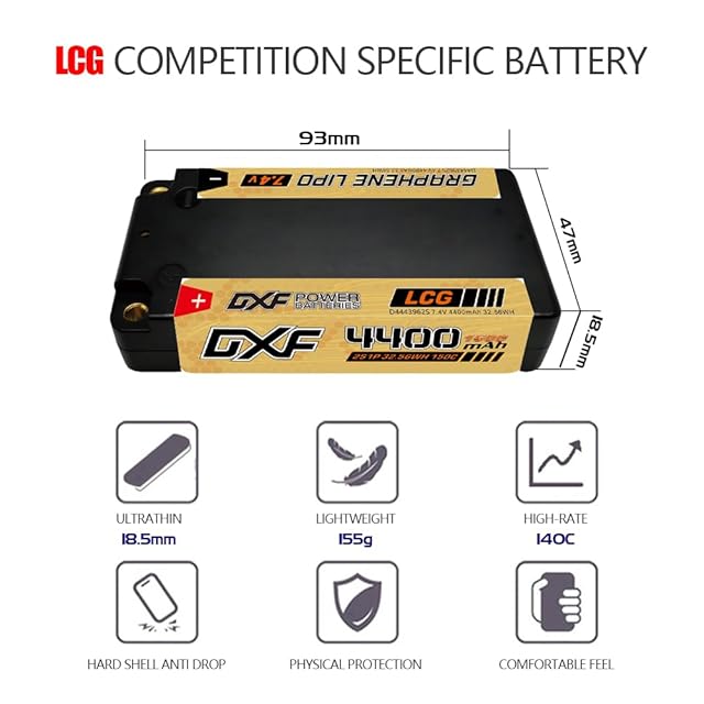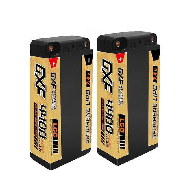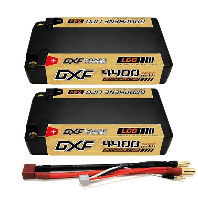 ショートリポバッテリーの威力を体感!DXF 2PCS LCG 4400mAh 150C 2S 7.4V リポバッテリー、ラジコンに革命をもたらす高容量で、RC1/10車両、トラック、ボートへの対応が可能。優れた性能で、競争力のある走行時間を提供します。