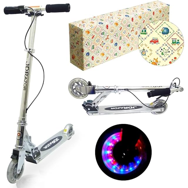 JD RAZOR MS-105RB キックボード キックスクーター 子供 小学生 ハンド ブレーキ付き LED 光る タイヤ 折り畳み コンパクト 軽量 2輪 プレゼント ギフト (【ラッピング済】クリア)