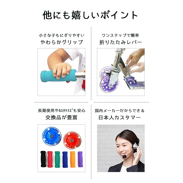 【大人も使える耐荷重】軽量かつ頑丈なボディのキックボードで、耐荷重は90kg。こどもから大人まで使用することが可能です。交換パーツも充実。安価の商品と異なり耐久性も高い為、兄弟間など長く使用することが可能
