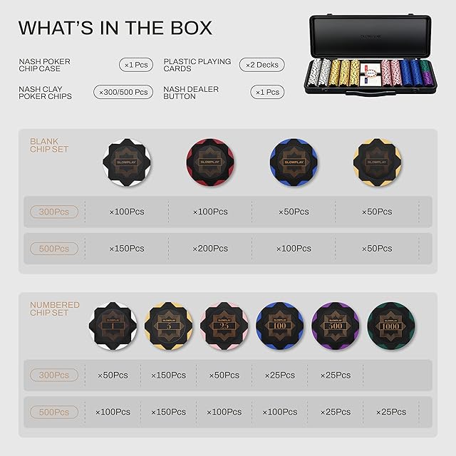 SLOWPLAY Nash クレイポーカーチップセット 14g テキサスホールデム 500枚 [チップバリュー表記なし] と耐久性に ポリカーボネート製ケース ポーカープレイヤーへのギフト