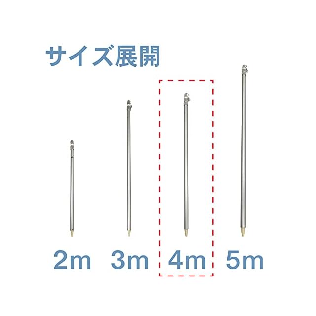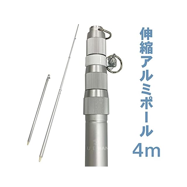 [旗用 伸縮式 アルミポール 4m] 伸縮 旗 国旗 社旗 応援旗 祝日 祭日 幕 のぼり イベント 金球 旗竿 鯉のぼり (シルバー, 4m)