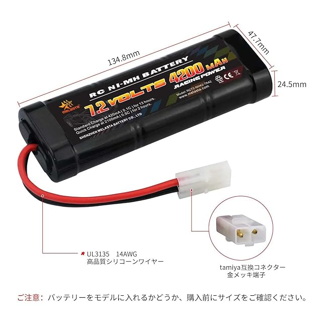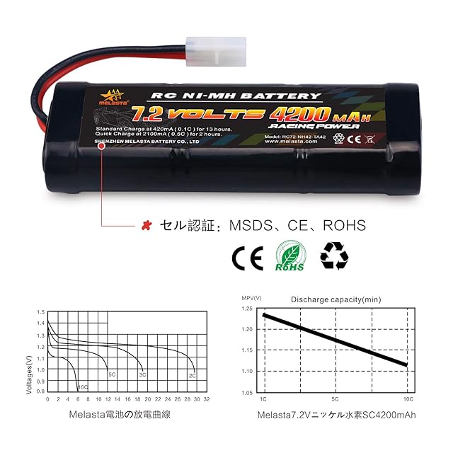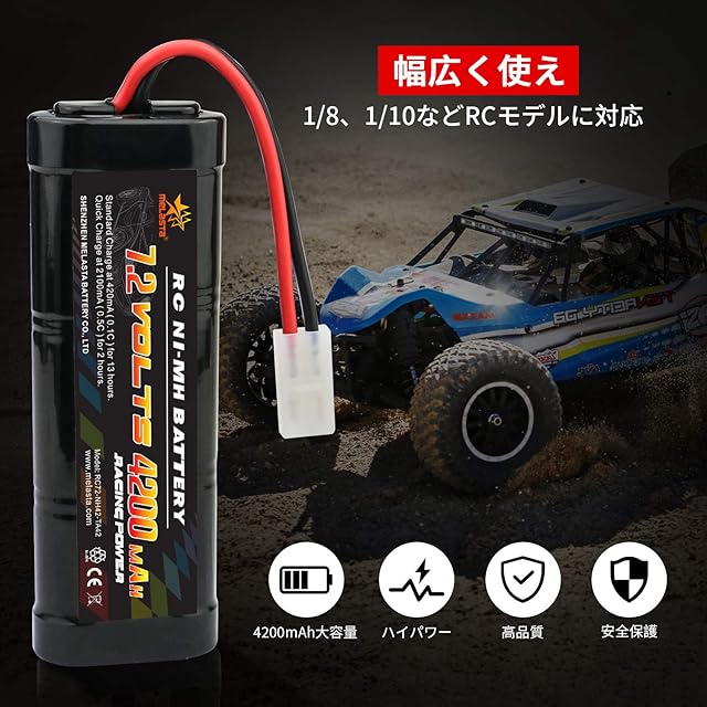 Melasta 7.2V 4200mAh ニッケル水素 バッテリー Tamiya タミヤ互換放電コネクター NI-MH 大容量 ラジコン バッテリー RCカー/レーシングカー/多種類RCモデル互換用 【CE ROHS認証済み】