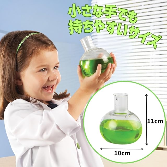 本体サイズ : 拡大鏡 (直径 約12.5cm x 高さ 約17.5cm) 、 試験管 (大 : 直径 約5.7cm x 高さ 約31cm 、 小 : 直径 約4cm x 高さ 約15.5cm)