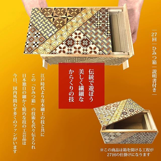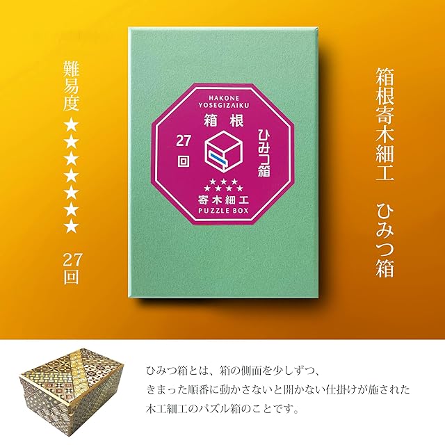 箱根 寄木細工 ひみつ箱 箱付き 伝統工芸品 パズル PuzzleBox HAKONE made 日本製 (DXサイズ/27回 難易度★★★★★★★)