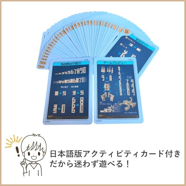 【セット内容】1×32個、2×12個、3×8個、4×6個、5×4個、6×4個、7×4個、8×4個、9×4個、10×2個、日本語版アクティビティカード×80枚