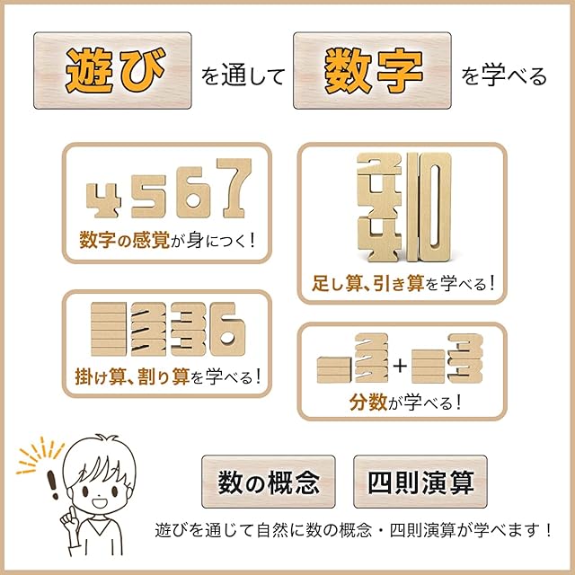 数学の概念が目で見て分かる!ブロックの高さがその数字の値に等しいので、数字の大きさを目で見て理解できます。