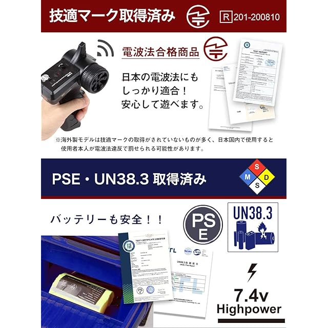 【安心して遊べます】日本の電波法にもしっかり適合!安心して遊べます。電波法は、携帯電話・Wi-Fi・Bluetoothなどの電波を規制する日本独自の法律です。総務省が定めた認定機関で検査をクリアすると、使用が認可され「技適マーク」が付与されます。またWPL JAPANはWPLの正規代理店です、説明書も箱ももちろん日本語。正規代理店だけのオリジナルステッカー付。サポートも国内スタッフが行っております。
