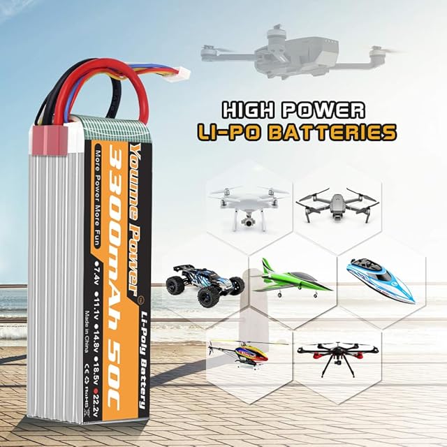 【商品名】Youme リポバッテリー 22.2v 6S 3300mAh 50C Deans T,素早く充電され、長いサイクル寿命(最低150時間)、最高260Wh / kgエネルギー密度