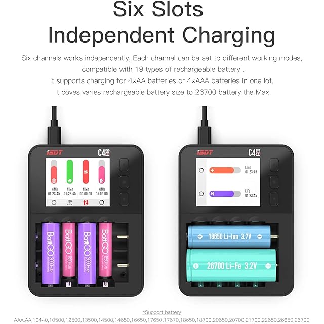 ISDT C4 EVO 電池充電器 スマート バッテリー 急速充電器 ミニ四駆 1-6S Lipo AA/AAA 単3・単4ニッケル水素バッテリー 18650 バッテリー RCドローン クアッドコプターファームウェアをV1.0.0.44にアップデートしてください。