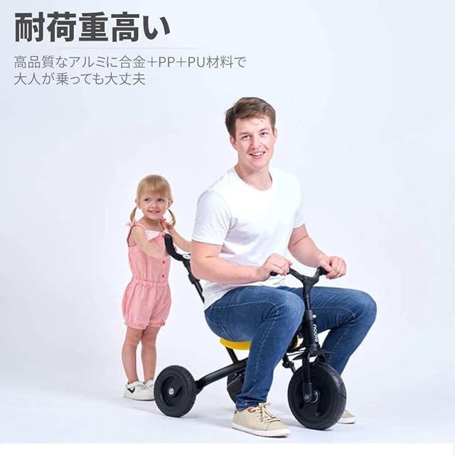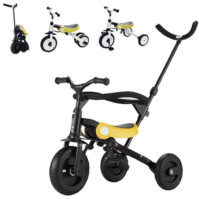 HZDMJ 3in1ベビーカー 折りたたみ三輪車 押し車 かじ付 組み立て簡単 自転車 子供用 発泡タイヤ 超軽量コンパクト 新型 便利 安全ガード付き プレゼントに最適 (イエロー)
