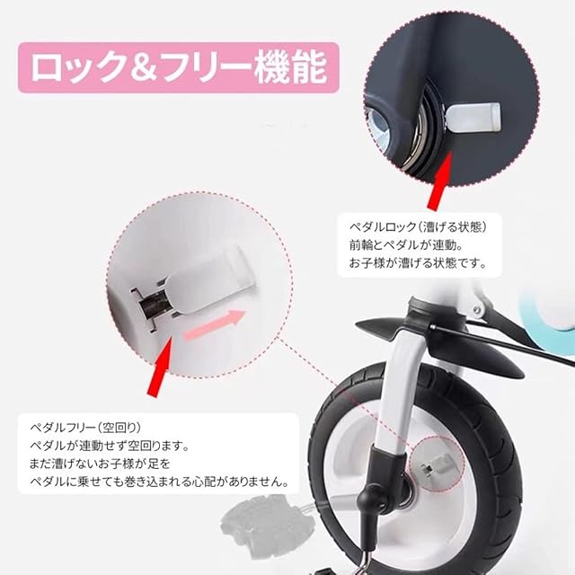 【滑り止め・特殊なタイヤ】滑り止めのペダルで子供の足が滑りません。PU製タイヤで空気を入れることがいりません、パンクしません、事故を防ぎ、乗り心地も良くなります。