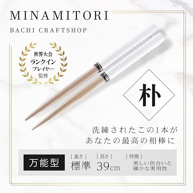 【当ショップについて】バチの素材となる木材の選定、加工、グリップ巻き、梱包の工程をお客様の手元に届くまで心を込めて自社ワンストップで行っております。現役金達人かつ全譜面制覇者、マイバチに携わって10年のMinamitoriが持つ経験と知識から、お客様に最高の製品を提供いたします。