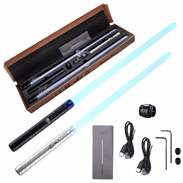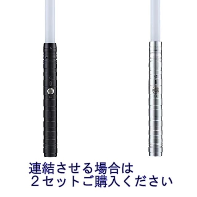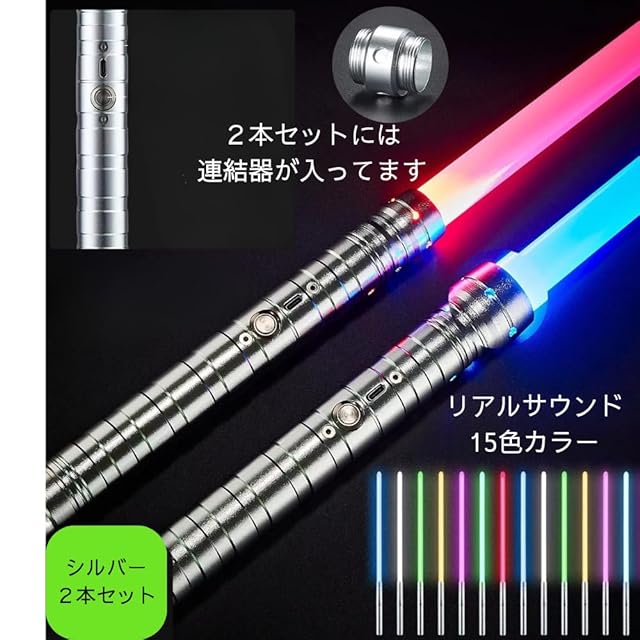 Ms.0 ライトセーバー RGB15色 連結可能タイプ サウンド USB充電 コスプレ 映え おもちゃ メタルヒルト モーションセンサー搭載 (シルバー2本セット)