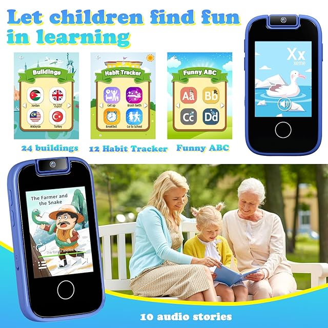 【2023年に新しくアップグレードされたタッチスクリーンの子供の携帯電話】タッチスクリーンのデュアルカメラの構成にアップグレードして、子供のカメラと音楽プレーヤーを組み合わせて、2.8インチの子供のタッチスクリーンの携帯電話を設計しました。この子供の携帯電話は豊富な機能を備えて、回転カメラ、音楽、ゲーム、習慣化、絵、カレンダー、録音、趣味のカメラ、電卓、オーディオブック、目覚まし時計、ABCアルファベット、懐中電灯などを含みます。あなたのお子さんは、このような遊びも学びもできるおもちゃを持つ価値があります。