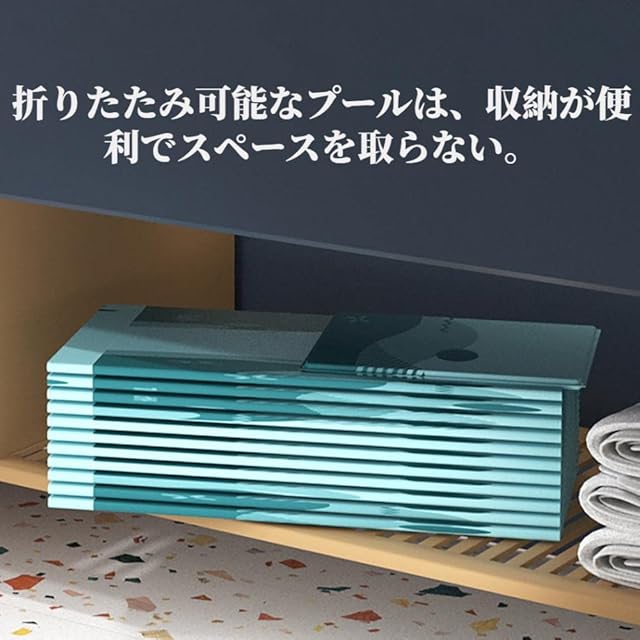 【折りたたみプール持ち運び便利】折りたたみ式で面倒な空気入れが不要です。使う時はサッと取り出して広げ、使わないとき、場所を取らないコンパクトに収納し、便利で持ち運びやすく、アウトドアや旅行の際に便利です。家族みんなは猛暑の夏にクールを感じられます。