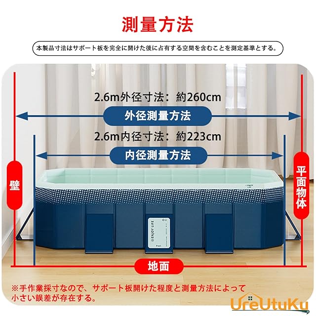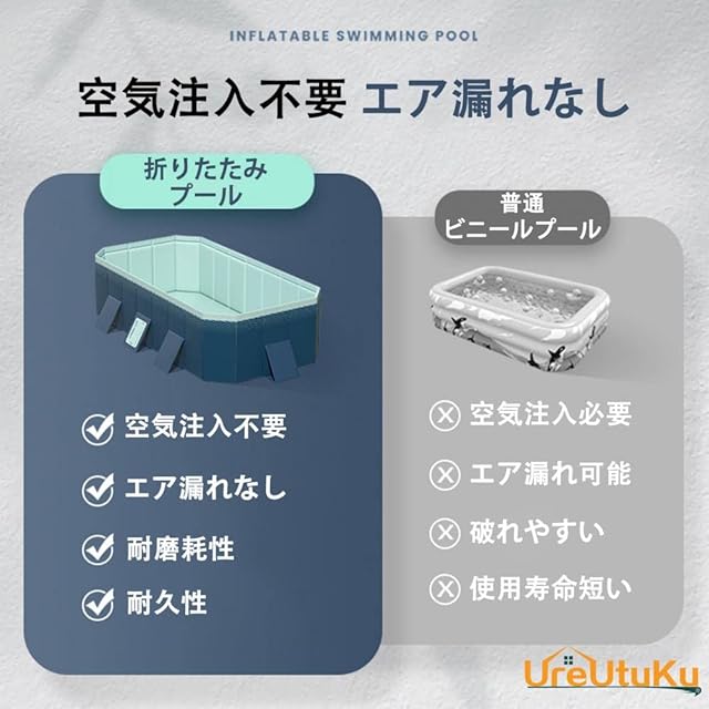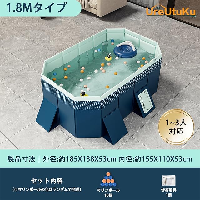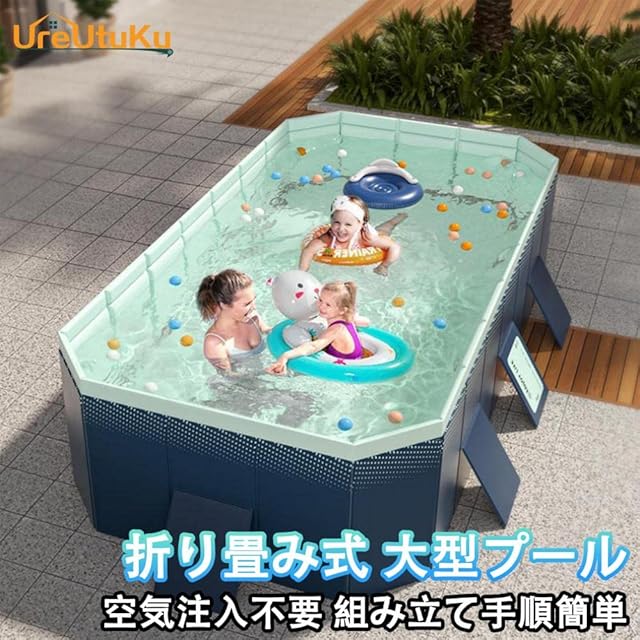 [UreUtuKu] 家庭用 折りたたみ式 大型プール 空気注入不要 子供用 収納便利 組み立て簡単 持ち運び便利 耐摩擦 水遊び 夏の日 猛暑対策 二重固定 ダブル排水口 庭 室内 室外プール (1.8mタイプ(196X107X45cm))