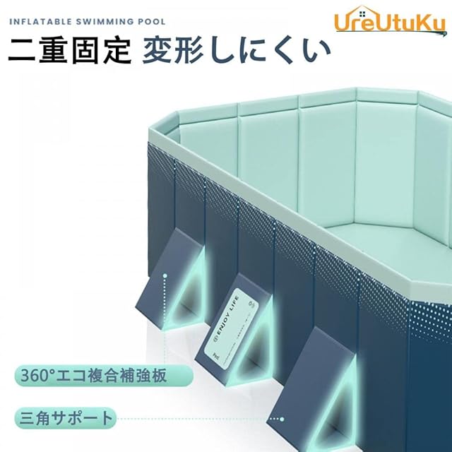 【無害PVC材質】プール全体に360°エコ複合補強板を採用し、優れた耐久性と耐摩耗性を持ち、空気漏れの心配がない。材料はいろな検査を経て、人体に無害である。周りの補強板がプールをしっかり支えて揺れず、見た目もおしゃれでかっこいいです。
