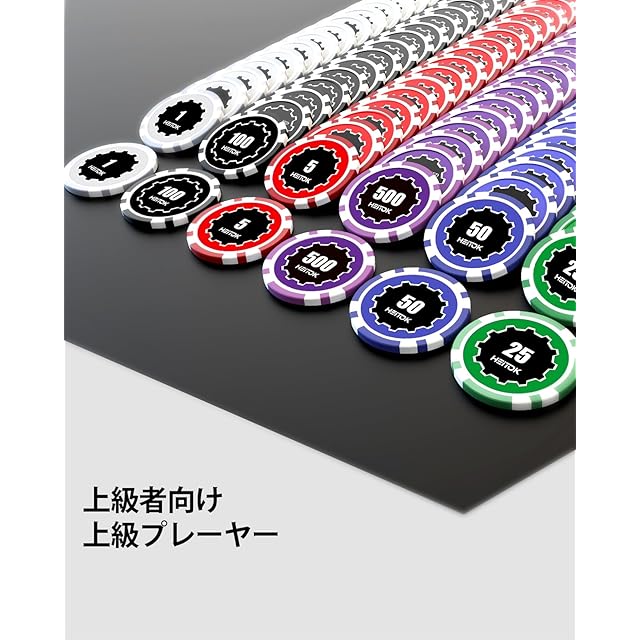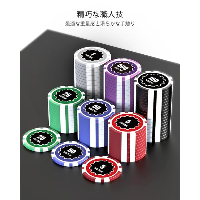 HEITOK ポーカーチップ 500枚 11.5g ポーカーセット ナンバー付き アルミケースセット テキサスホールデム対応 ダイス5個・トランプ2組付き