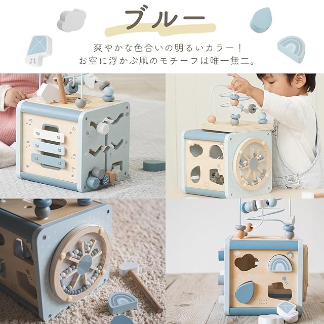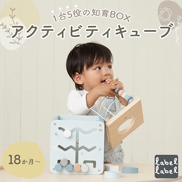 LabelLabel (レーベルレーベル) アクティビティキューブ 木製 おもちゃ ルーピング 型はめ 赤ちゃん 1歳 2歳 誕生日プレゼント 男の子 女の子 木のおもちゃ 知育玩具 (ブルー)