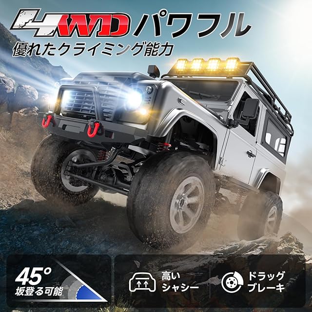 DEERC ラジコン オフロード クローラー ラジコンカー 子供向け リモコンカー RCカー おもちゃ 1/12 4WD 無段階制御 ブレーキ機能 RTR 独立サスペンション バッテリー2個 120分の操作時間 LEDライト付き 子供 大人向け 彼氏 小学生 中学生 誕生日 プレゼント クリスマス 贈り物 ギフト 技適認証済 FY003-5A