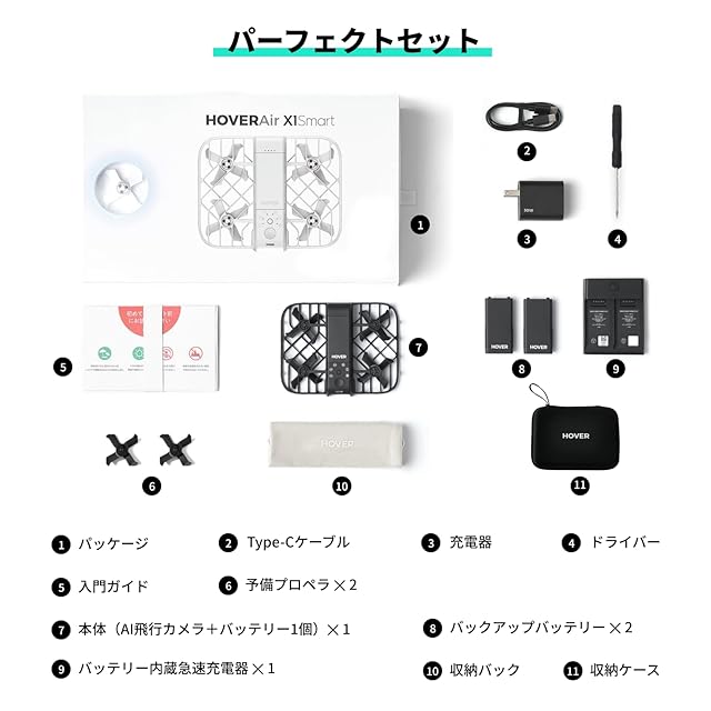 color:ホワイト size:パーフェクトセット(飛行時間55分&収納ケース付き):