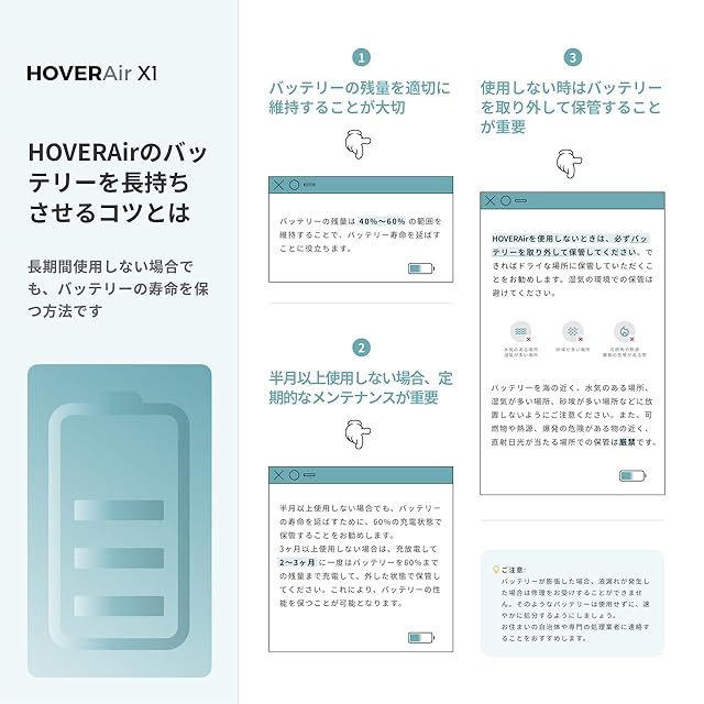 【充実のカスタマーサポート】 お客様に安心してお使いいただけるアフターサポートもお任せください。安心の1年製品をご提供いたします。故障と思われる場合はもちろん、日々のご使用で改善して欲しい点や、ご不明な点等ございましたらいつでもお気軽にご連絡ください。正常な使用方法のもとで万が一発生した故障については、期間内であれば無償で修理いたします。※取扱説明書に記載されている使用方法など。 お問い合わせ方法: Hoverair公式サイトからご連絡ください。日本語サポートで24時間以内(土日祝日除く)に返信いたします。