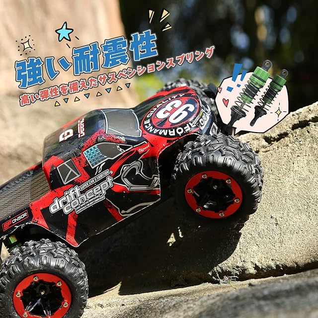 【最大速度60KM/H四輪駆動】90-95m/sの高速で、強力なモーターを搭載され、最高60KM/Hまで最高速度に達することができます。四輪駆動と独立なサスペンションでサポートされています。オフロードや道路環境で無限のエキサイティングなエンターテイメントを与えます。子供/男の子/ 彼氏/ 小学生/ 中学生/父親に最適なプレゼント