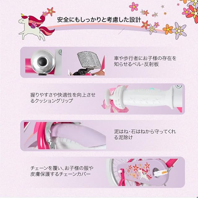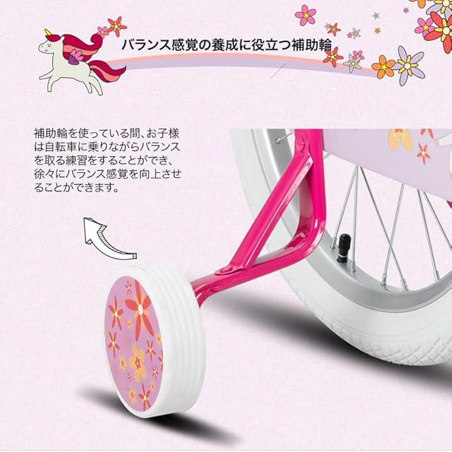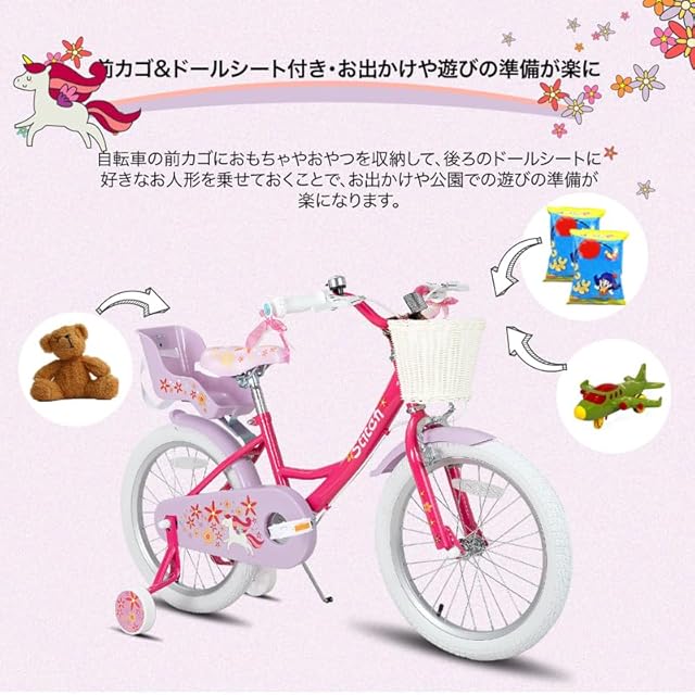 STITCH 子供用自転車 Unicorn カゴ ベル 補助輪 人形用シート リボン 付き 男の子 女の子 12 14 16 18インチ ジュニア用 小学生 中学生 幼児用 自転車 可愛い お誕生日プレゼント おしゃれ ガール ボーイズ ドールシート [並行輸入品]