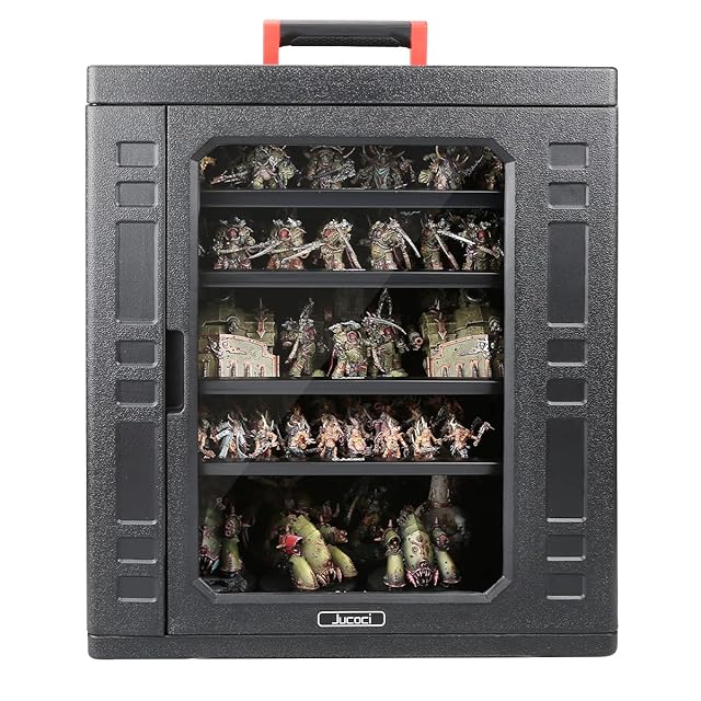 Jucoci ミニチュア収納ケース 金属トレイ付き プラスチック製 トランスポートケース 大容量 5500ポイント以上収納可 モデルキャリーケース 卓上ゲーム対応 ミニチュア用 工具収納ボックス 持ち運び便利