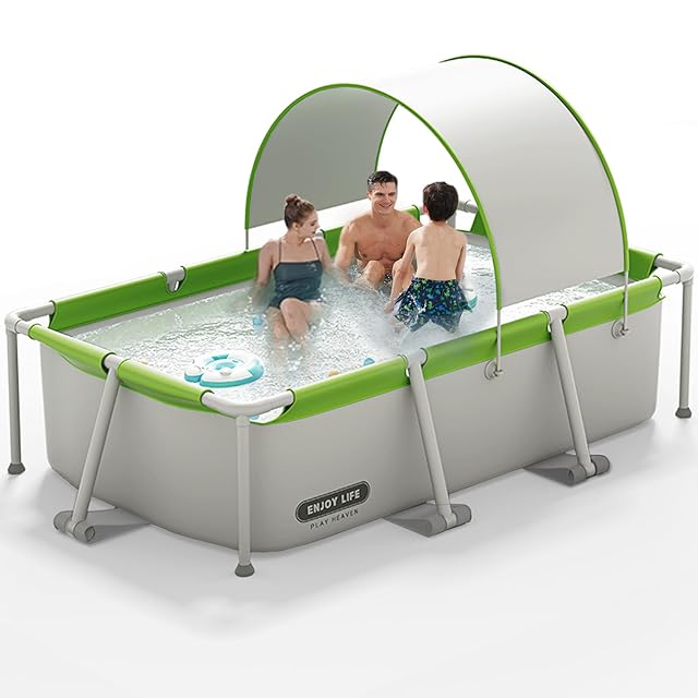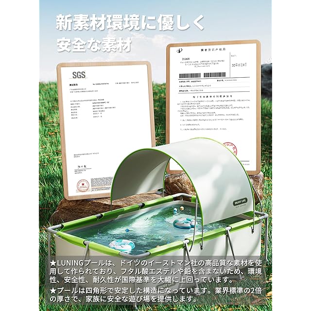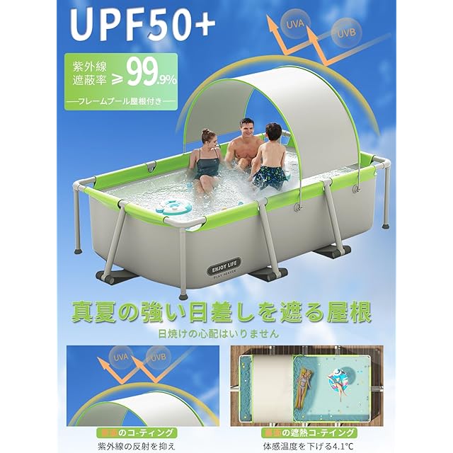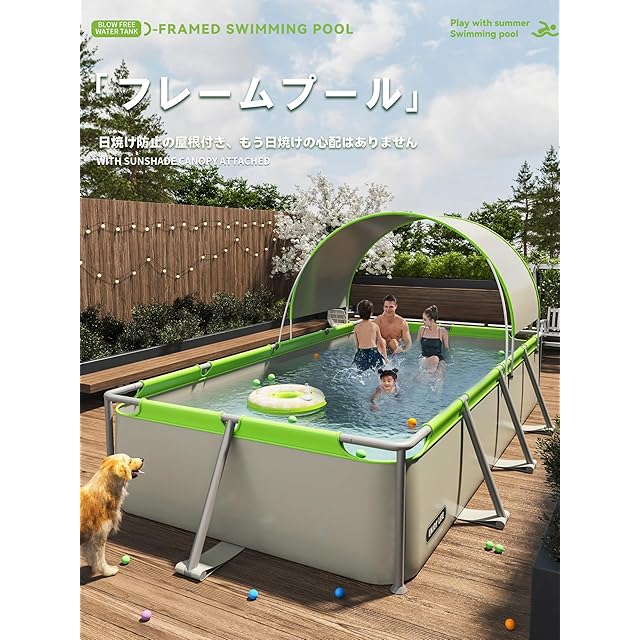 LUNING【2025新登場 フレームプール】 屋根付き 大型プール 空気入れ不要 子供用 家庭用 耐高温 耐摩擦 紫外線遮蔽 猛暑対策 水遊び 簡易露天風呂 日本語説明書付き (外径490*242*84CM、内径436*208*84CM)