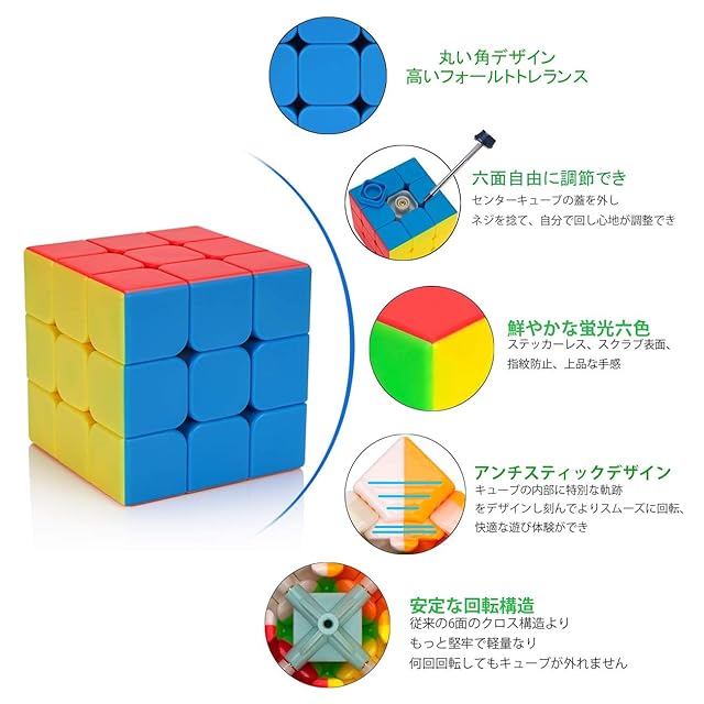 ✅【抜群な安定感&耐久性】丸い角デザイン、もっとスムーズ、高いフォールトトレランス、競技専用キューブ、どんなに速く回しても 、キューブパーツが外れることがありません。高品質PVCシールもしっかりと貼られて、手触りがより良い剥がれにくい。