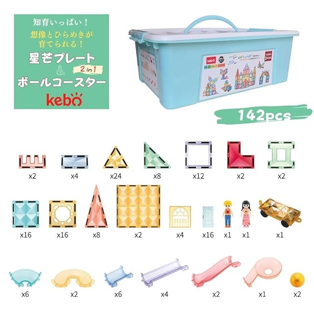 kebo 知育玩具 おもちゃ 磁石ブロック ビー玉転がし 積み木 立体パズル クリスマス プレゼント 3歳 4歳 5歳 6歳 お誕生日 入学 入園 お祝い 出産祝い マグネット ブロック ボールコースター (142pcs)
