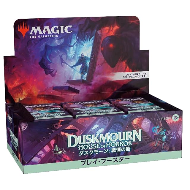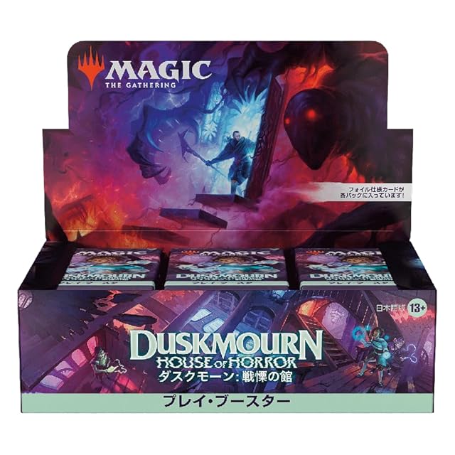 悪夢の館で生き残れ――次元全体に広がる館「ダスクモーン」へ踏み込みましょう。そこでは対戦相手 開けて楽しい、プレイして楽しい――リミテッドでのプレイにも開封を楽しむにも最適なプレイ・ブースターからは、アート・カードや別イラスト版カード、特別なフレームのカード、多くのレアや神話レアが手に入る可能性があります。