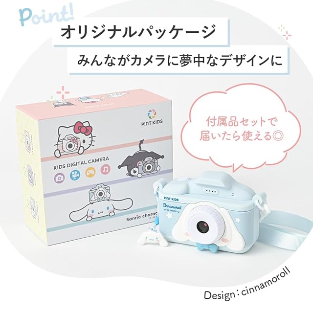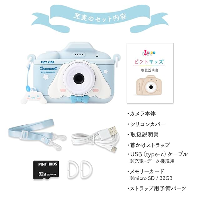 ピントキッズ キッズカメラ トイカメラ サンリオコラボ 日本企業 シナモロール シナモン 子供用カメラ プレゼント 子供用 男の子 女の子 32GB インカメラ搭載 動画機能 撮影データ転送可能 音楽プレーヤー ゲーム機能 誕生日 クリスマス (シナモロール)