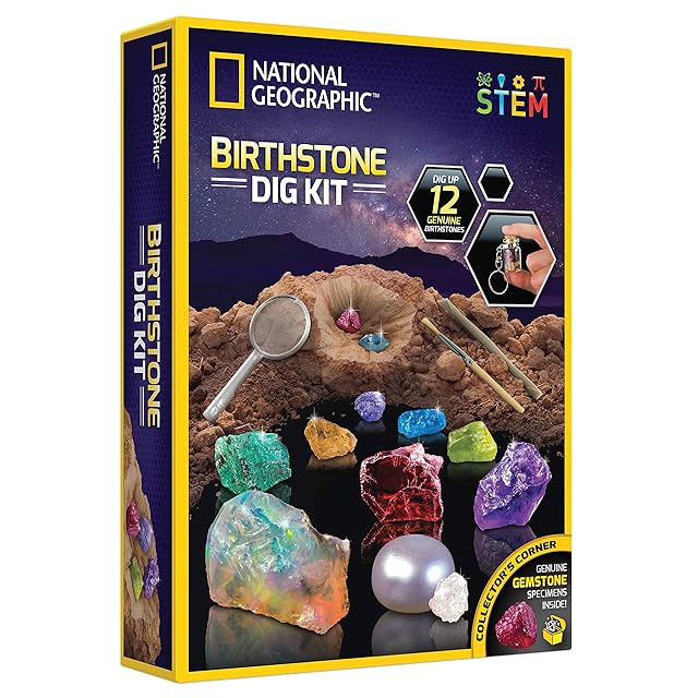 ナショナルジオグラフィックの誕生石発掘キット - サイエンスキット 本物の誕生石12個付き 本物のダイヤモンド、ルビー、サファイア、真珠入り 宝石、水晶、鉱物コレクション ( 限定品)