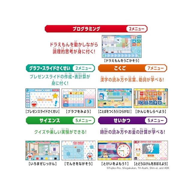 2021年より本格化した学校教育【GIGAスクール構想】の準備に最適な学習パッドです。GIGAスクール構想メニュー、プログラミング学習、カメラ学習、ドリル学習など、ドラえもんと一緒に学べる問題が2000問以上収録され、長く楽しく学べます!