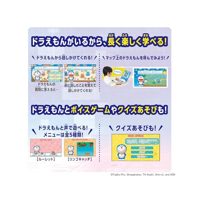 その他、ドラえもんとチャットができるメニューや、カメラ・ゲームなどのお楽しみメニューも充実!入学準備にピッタリなアイテムです。